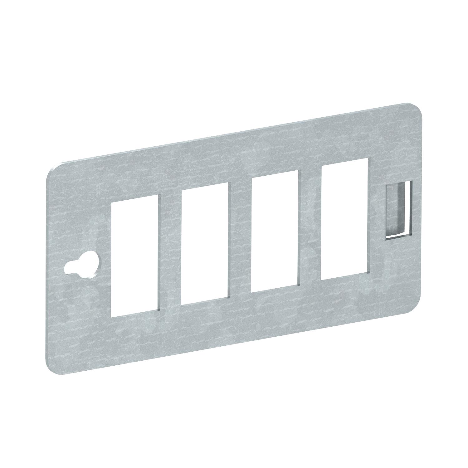 Plaque de support d'appareillages pour le logement de 4 connecteurs Snap-In 3 pôles dans un coffret de distribution.